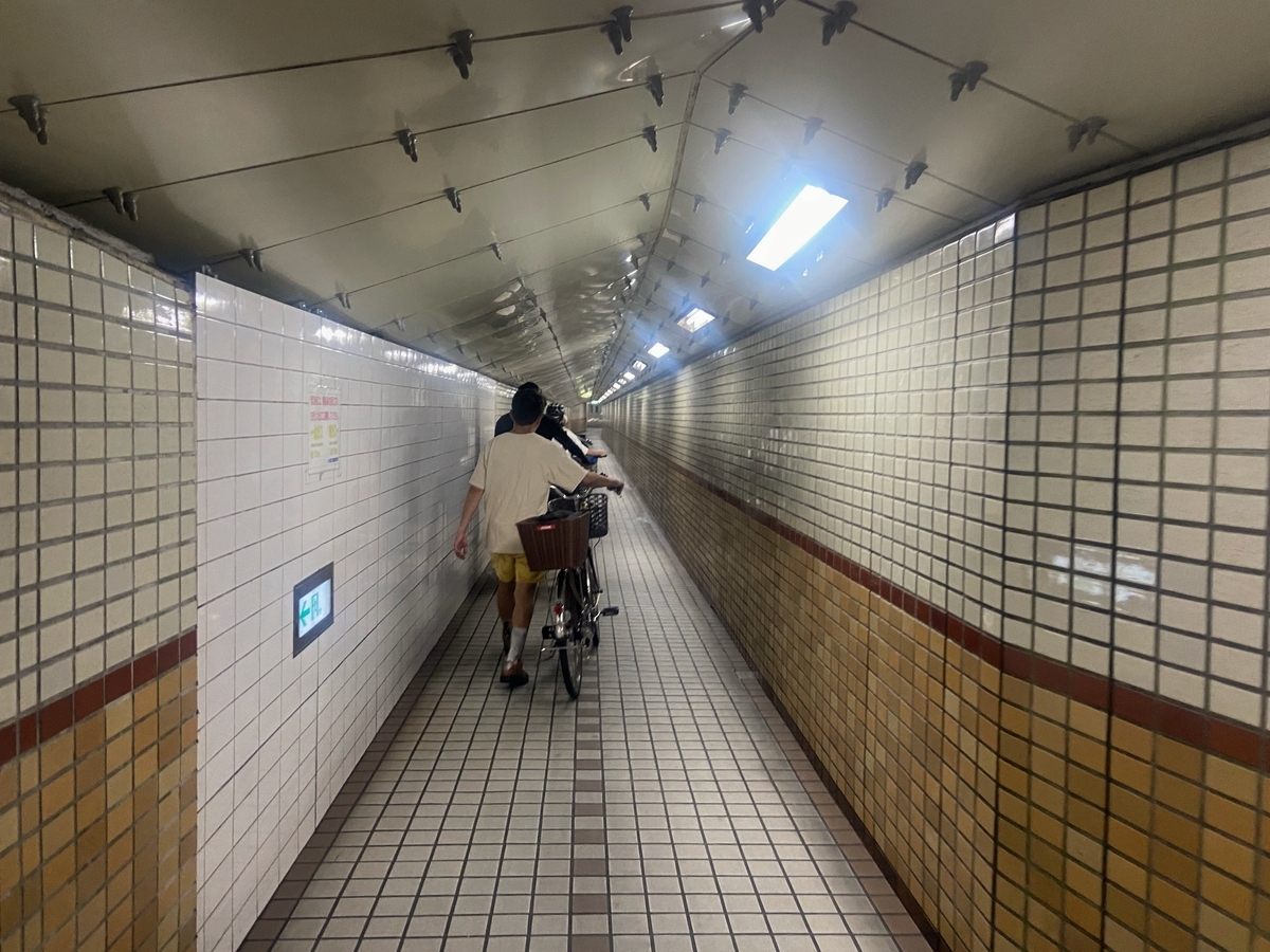 すぐ近くの高井田駅から輪行。いったん環状線の真ん中にある宿に戻るため*3、西九条駅で下車。この駅を選んだ理由は、安治川トンネルを通ろうかと思って(笑) これは、エレベーターを使って安治川の河底を抜ける日本初の沈埋トンネル。隧道好きにオススメ。
